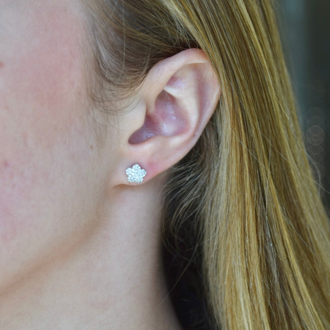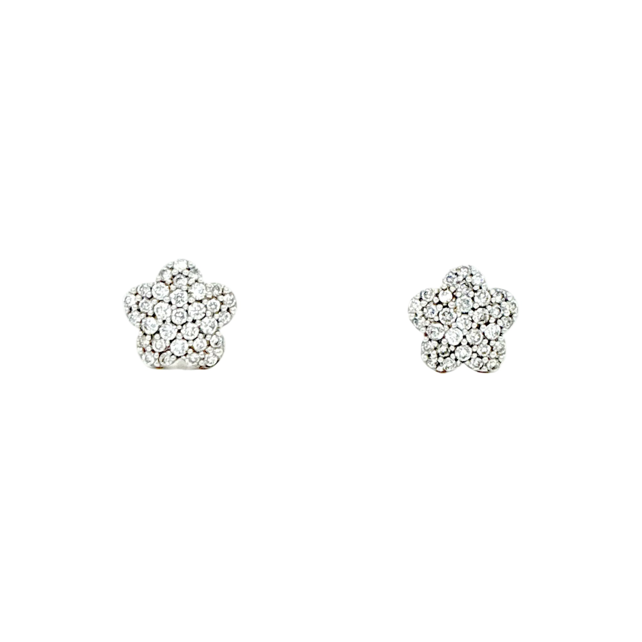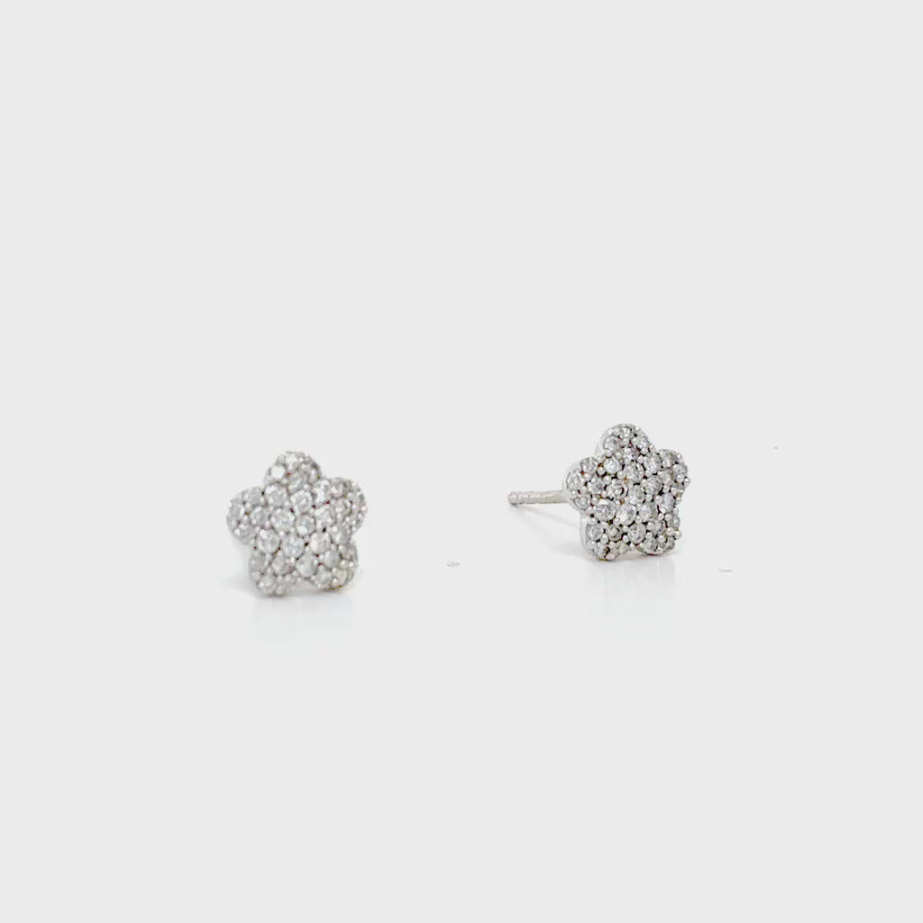 Aros flor de oro blanco 18k y 0.17ct en diamantes.