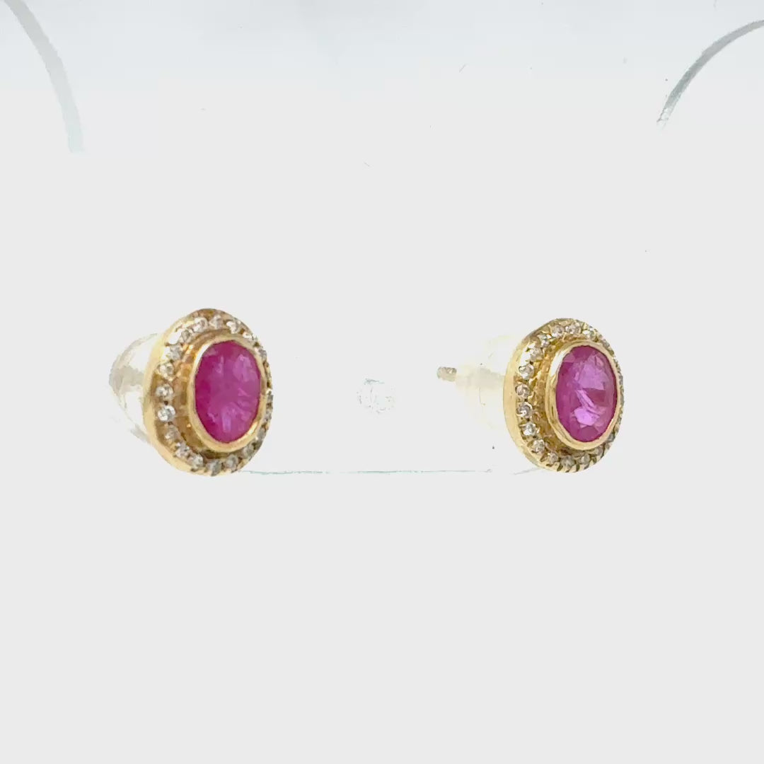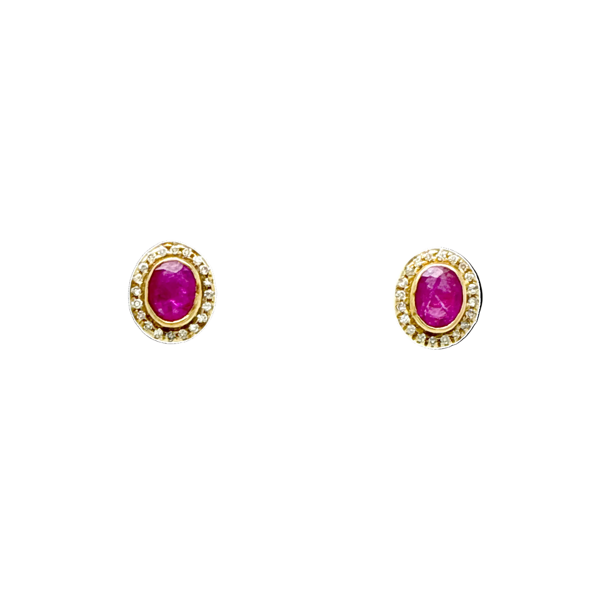 Aros de oro amarillo 14k, 0.75ct en Rubíes ovales y 0.12ct en diamantes.