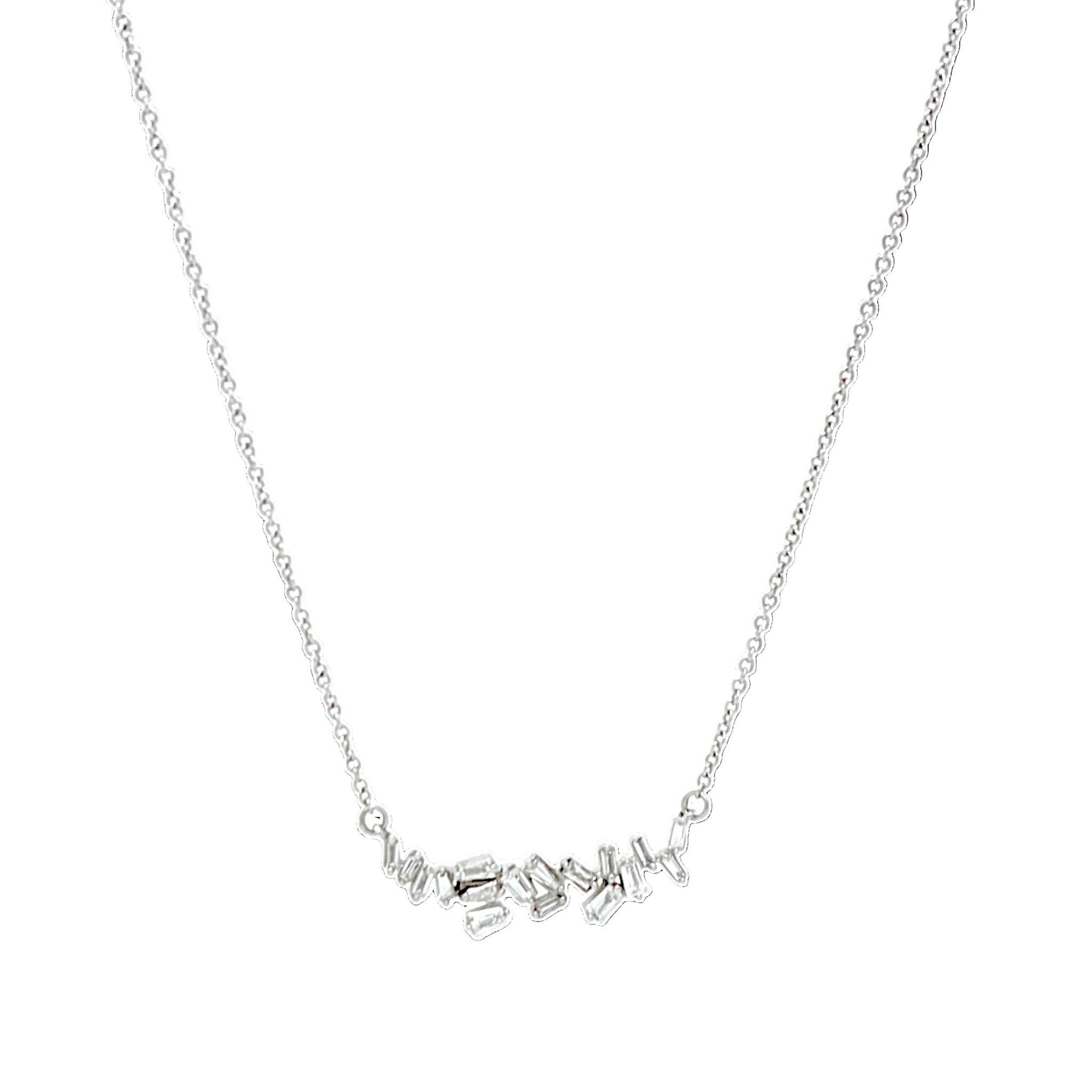 Collar barrita de oro blanco 14k y 0.22ct en diamantes.