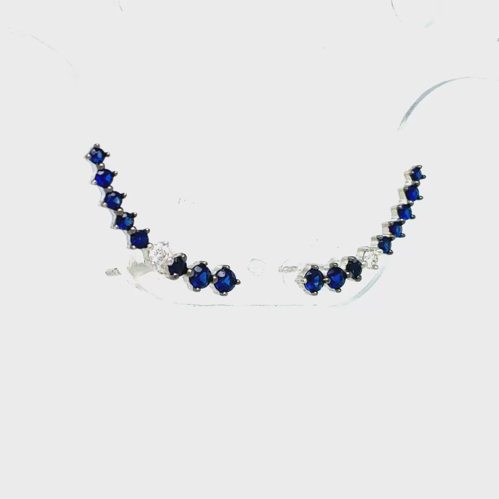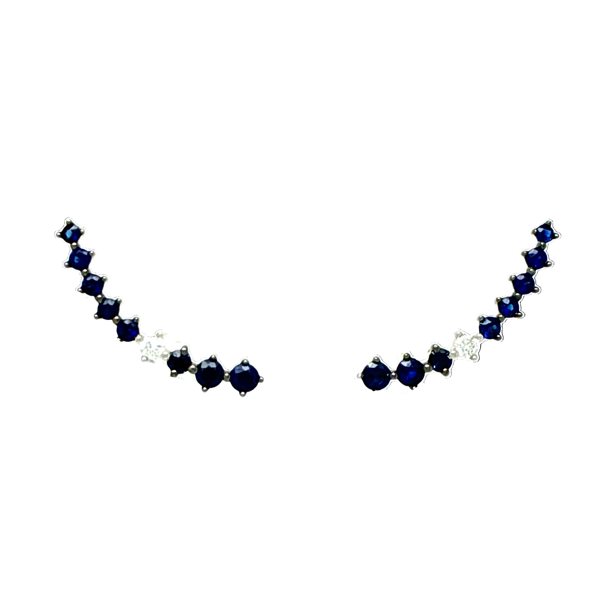 Aros trepadores oro blanco 18K con zafiros 0,52cts y 0.06cts en diamantes.
