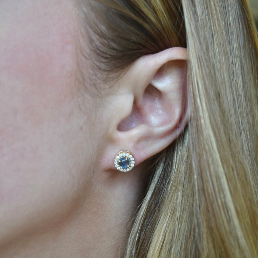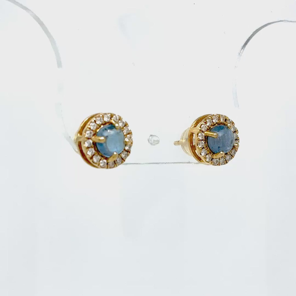 Aros de oro amarillo 14k, 0.23ct en diamantes y 0.93ct en aguasmarinas.