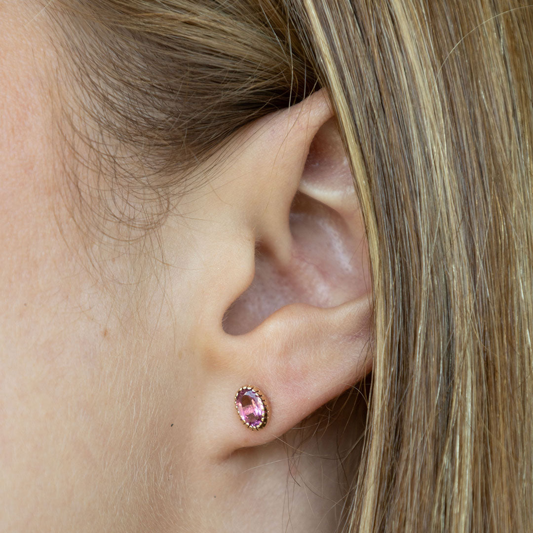Aros de oro amarillo de 14k y 0.85ct en turmalinas rosadas.