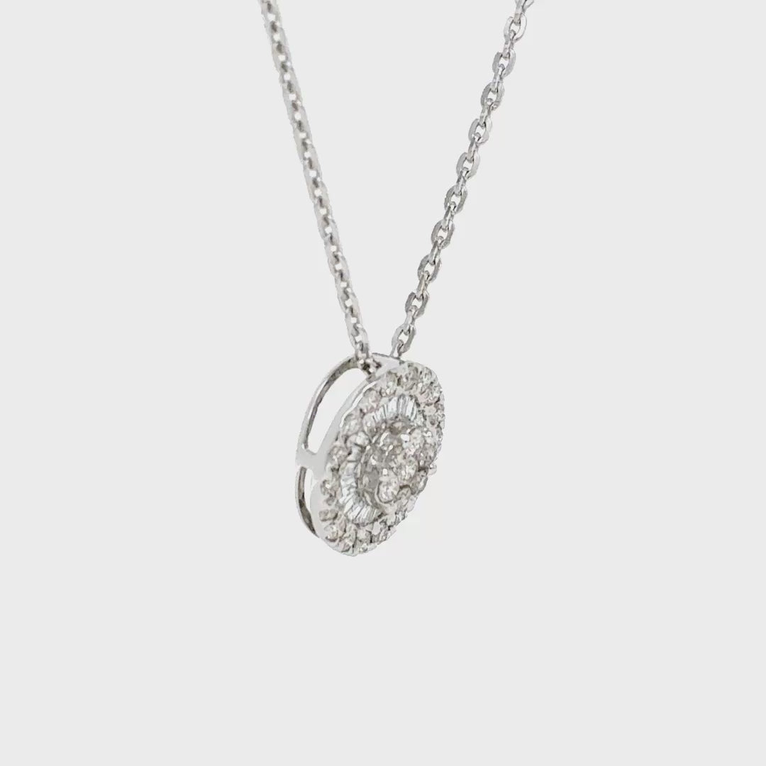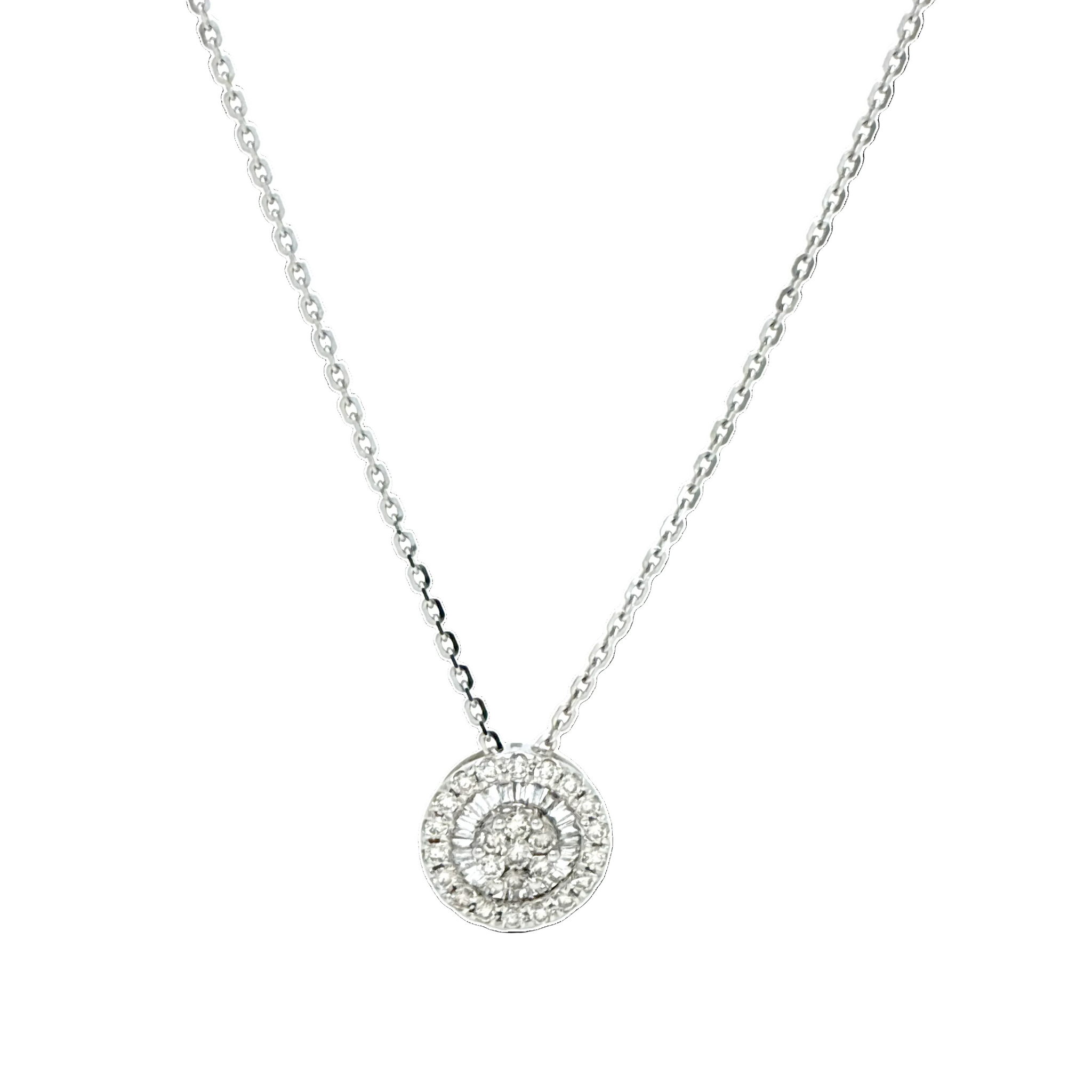 Collar de oro blanco 18k, 0.30ct en diamantes corte brillante y 0.10ct en diamantes corte baguette.